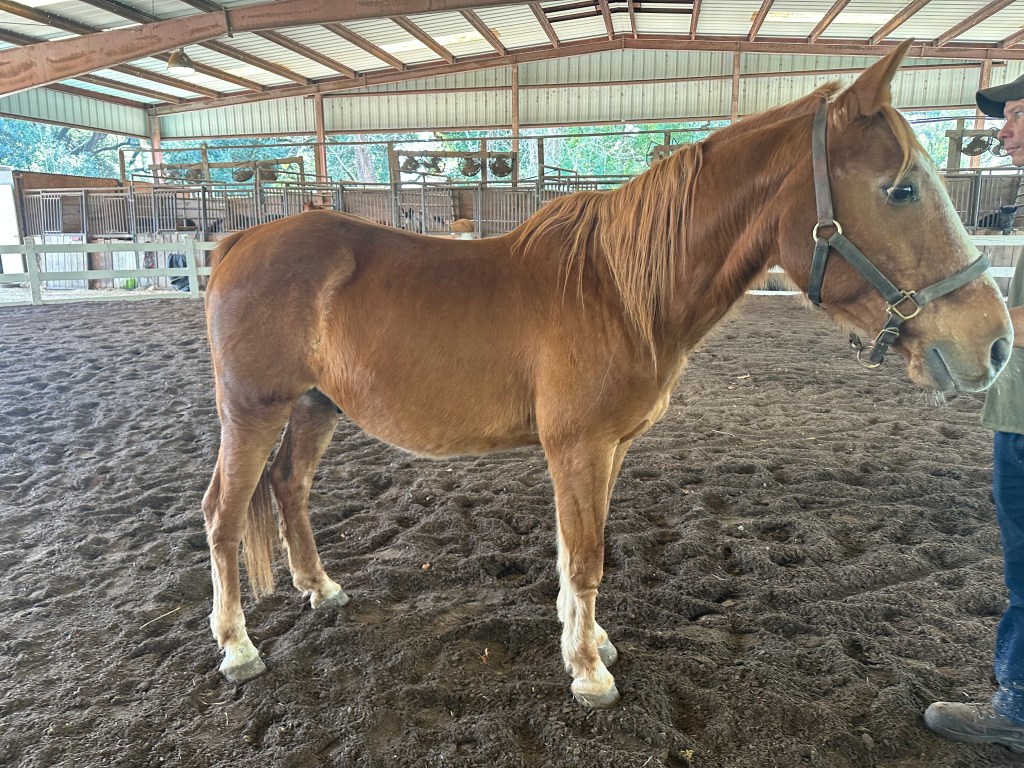 COMMENTS FROM STAFF/VOLUNTEERS/NOTES: RIDES/VERY DOCILE/LOVES ATTENTION/ PASTURE BUDDY